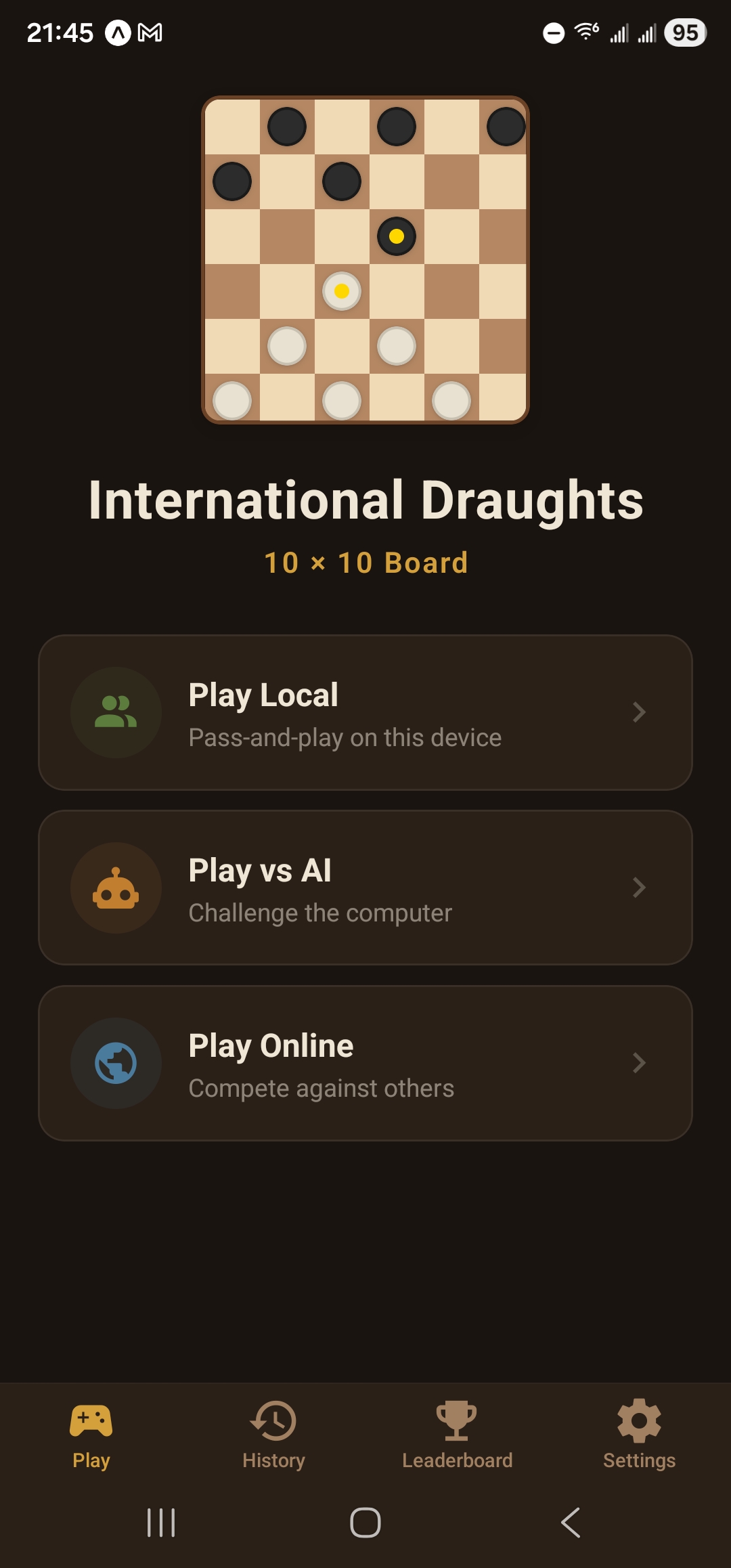 Whether you're a complete beginner learning the basics or a seasoned strategist chasing the top of the leaderboard, International Draughts has something for you.